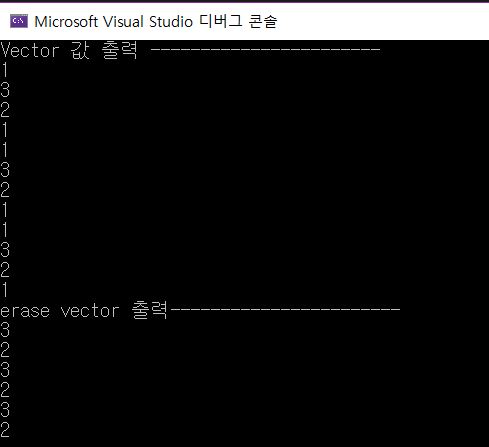 cout << "erase vector 출력-----------------------" << endl;